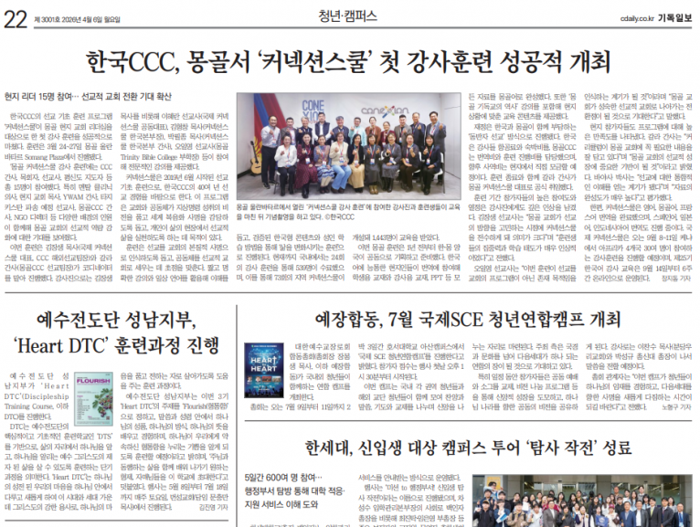 [기사] 예수전도단 성남지부, ‘Heart DTC’ 훈련과정 진행(기독일보)