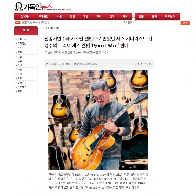 [기사] 찬송가연주와 가스펠 앨범으로 만났던 재즈 기타리스트 김성수의 트리오 재즈 앨범 ‘Pyrmont Wharf’ 발매(기독인뉴스)